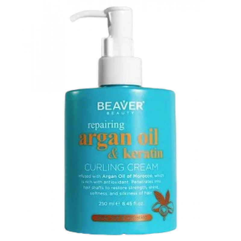 Крем с аргановым маслом для упругих кудрей Beaver Professional Repairing Argan Oil & Keratin Curling Cream - создайте безупречные кудри инновационным средством, которое одновременно ухаживает за волосами и помогает создать выразительную укладку. Этот крем питает локоны, придавая им четкость, упругость и естественный блеск, а также защищает их от внешних воздействий.